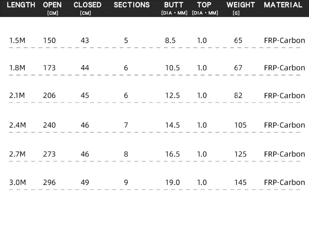 | Canne à pêche JOSBY | 1.5M, 1.8M, 2.1M, 2.4M, 2.7M, 3.0M |